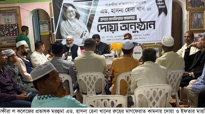 নিজস্ব প্রতিনিধি: সাতক্ষীরা ল কলেজের প্রভাষক মরহুমা এড. হাসনা হেনা খানের রুহের মাগফেরাত কামনায় কোরআন খতম, দোয়া ও ইফতার মাহফিল অনুষ্ঠিত হয়েছে। শনিবার (২১ ফেব্রুয়ারি) বিস্তারিত