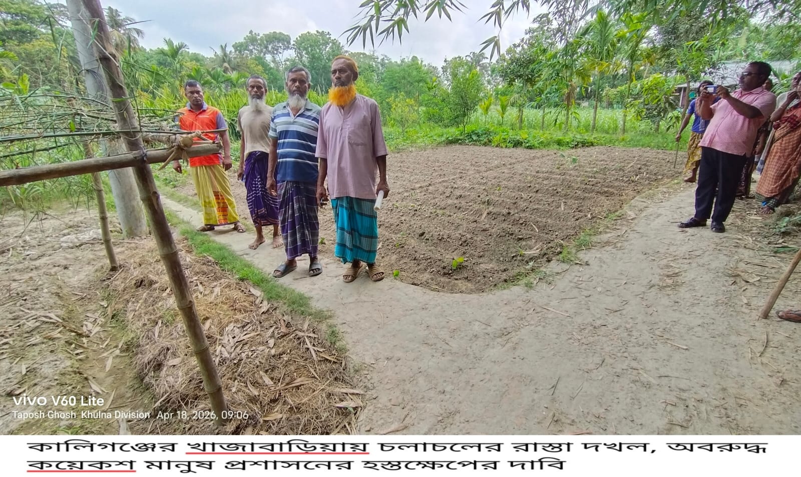 তাপস কুমার ঘোষ, কালিগঞ্জ (সাতক্ষীরা) প্রতিনিধি: সাতক্ষীরার কালিগঞ্জ উপজেলার মথুরেশপুর ইউনিয়নের খাজাবাড়িয়া গ্রামে দীর্ঘদিনের ব্যবহৃত একটি জনসাধারণের রাস্তা হঠাৎ বন্ধ করে দেওয়ায় চরম দুর্ভোগে পড়েছেন কয়েকশ মানুষ।