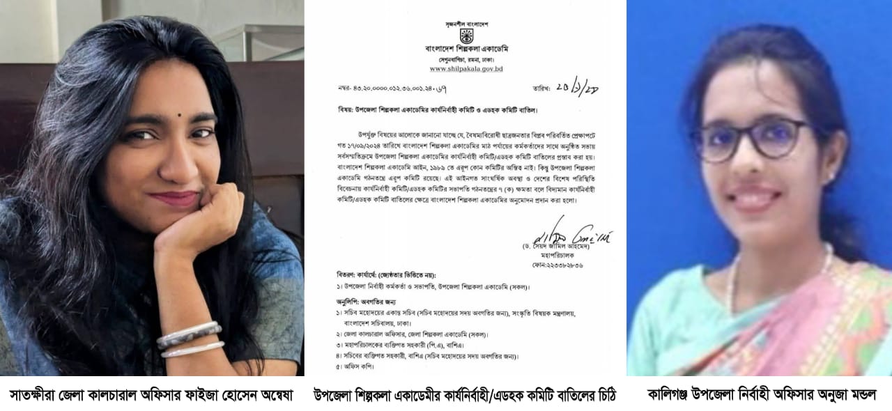 উপজেলা শিল্পকলা একাডেমির কার্যনির্বাহী/এডহক কমিটি বাতিলের ক্ষেত্রে আপনারা কোন চিঠি করেছেন কি না বা ৪৩.২০.০০০০.০১২..৩৬.০০১.২৪.৬৭ নম্বরের স্বারক বহাল থাকবে কি না? ঈ্রশ্ন করা হলে তিনি বলেন, একই নির্দেশনা বহাল থাকবে নতুন নির্দেশনা না আসা পর্যন্ত।