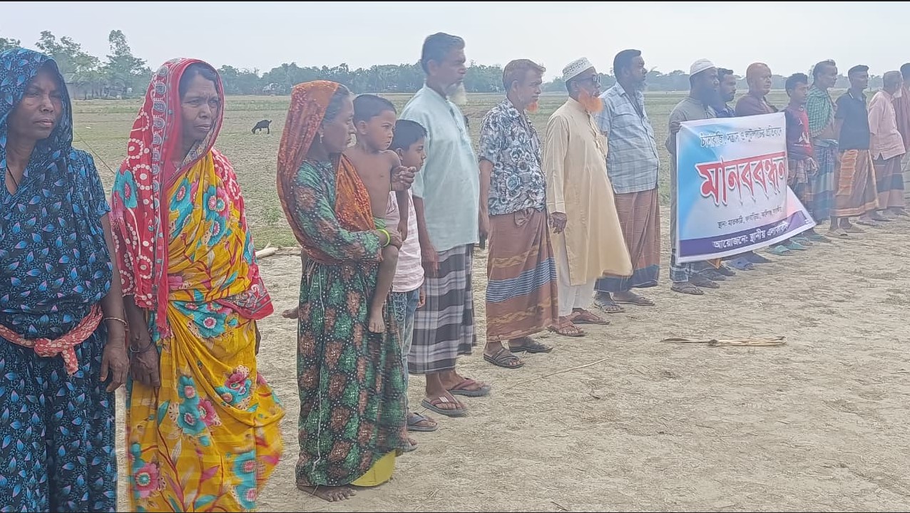মানববন্ধনে বক্তব্য রাখেন, ভুক্তভোগী কৃষক মুজাহিদুল ইসলাম, জমি মালিক মহব্বত গাজী, স্থানীয় বাসন্দা জাহাঙ্গীর গাজী, হান্নান গাজী, তরিকুল গাজী, গোপাল মন্ডল, গোবিন্দ মন্ডল প্রমুখ।