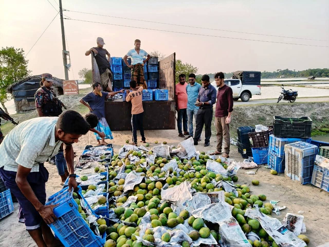 অভিযান শেষে জব্দকৃত আম শুইলপুর বিজিবি ক্যাম্প সংলগ্ন ভেড়িবাঁধ সড়কে ট্রাকের নিচে চাপা দিয়ে বিনষ্ট করা হয়েছে।