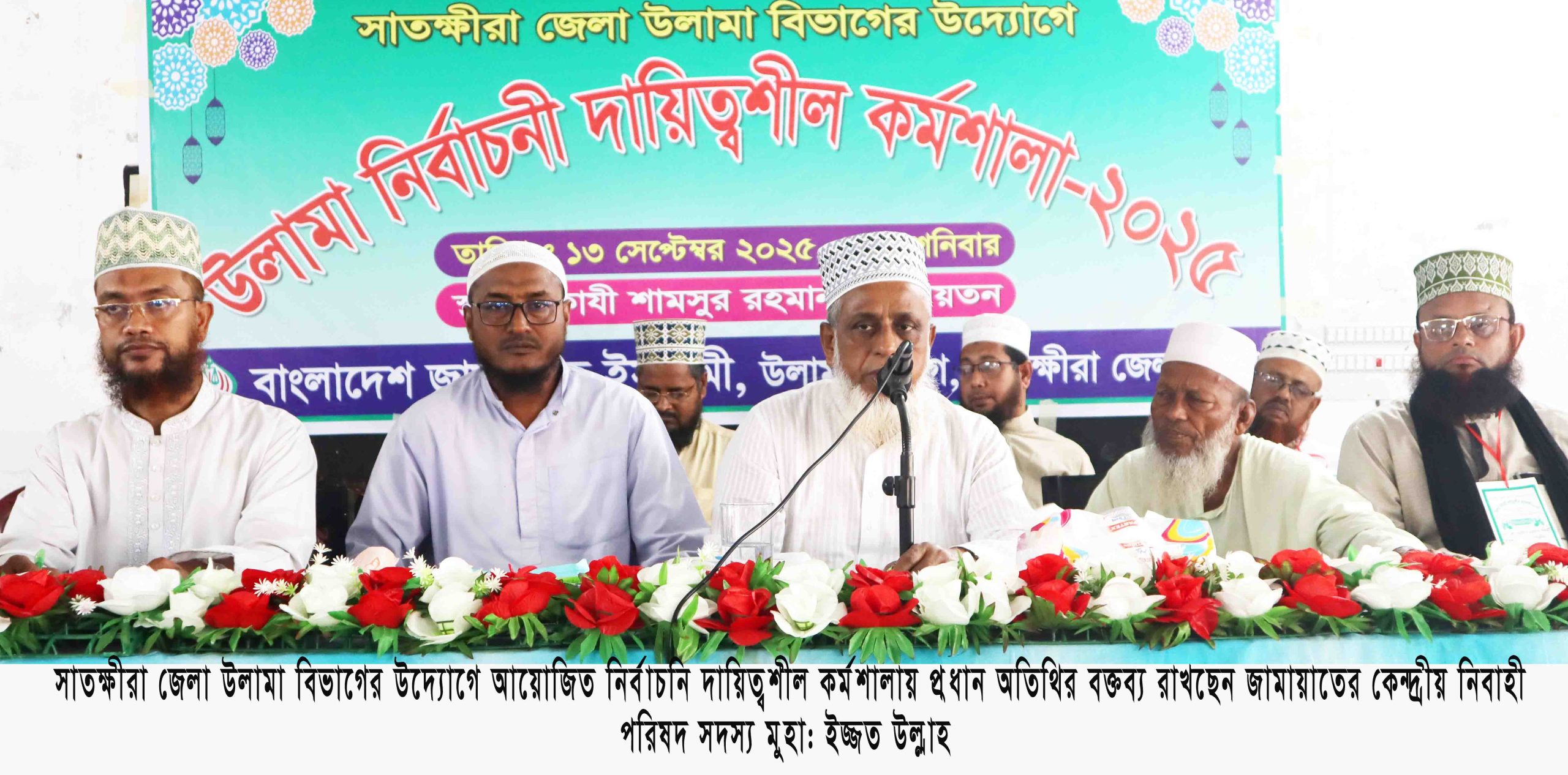 জেলা জামায়াতের সহকারী সেক্রেটারি জেনারেল ও জেলা ওলামা বিভাগের সভাপতি মাওলানা ওসমান গণির সভাপতিত্বে ও জেলা কর্মপরিষদ সদস্য ড. রুহুল আমিনের সঞ্চালনায় জামায়াতের কেন্দ্রীয় সাংগঠনিক সেক্রেটারী ও সাতক্ষীরা জামায়াতের সাবেক আমীর মুহাদ্দিস আব্দুল খালেক, জেলা আমীর উপাধ্যক্ষ শহিদুল ইসলাম মুকুল, জেলা সেক্রেটারী মাওলানা আজিজুর রহমান, জেলা কর্মপরিষদ অধ্যক্ষ মাওলানা আব্দুল বারী প্রমুখ বক্তব্য রাখেন।