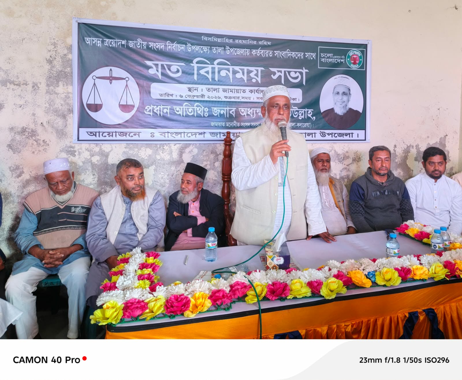 শুক্রবার (৬ ফেব্রুয়ারি) বেলা ১১টায় তালাস্থ নির্বাচনী কার্যালয়ে এ মতবিনিময় সভা অনুষ্ঠিত হয়। সভায় সাতক্ষীরা জেলা জামায়াতের নায়েবে আমীর ডা. মাহমুদুল হকের সভাপতিত্বে প্রধান অতিথির বক্তব্য রাখেন অধ্যক্ষ মো. ইজ্জত উল্লাহ।