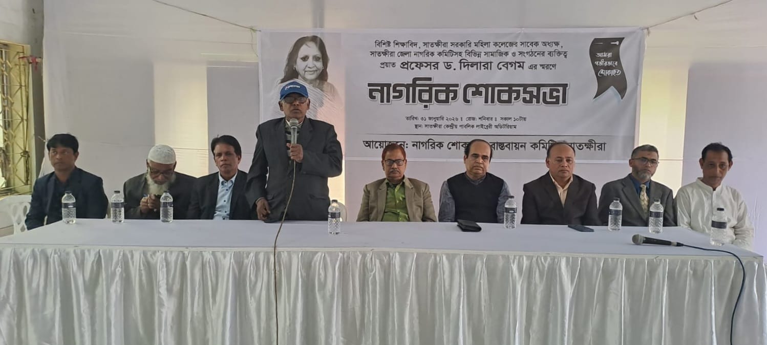 অনলাইন ডেস্ক: আকাশে মেঘ ছিল কি না জানা নেই, তবে সাতক্ষীরা কেন্দ্রীয় পাবলিক লাইব্রেরি অডিটরিয়ামে শনিবার ছিল বিষন্নতার ছায়া। শোক, শ্রদ্ধা আর গভীর ভালোবাসার চাদরে মুড়িয়ে স্মরণ করা হলো এক আলোকবর্তিকাকে-প্রফেসর ড. দিলারা বেগম। শনিবার (৩১ জানুয়ারি) বেলা ১১টায় অনুষ্ঠিত এই নাগরিক শোকসভা যেন হয়ে উঠেছিল স্মৃতি আর বেদনার এক মিলনমেলা।