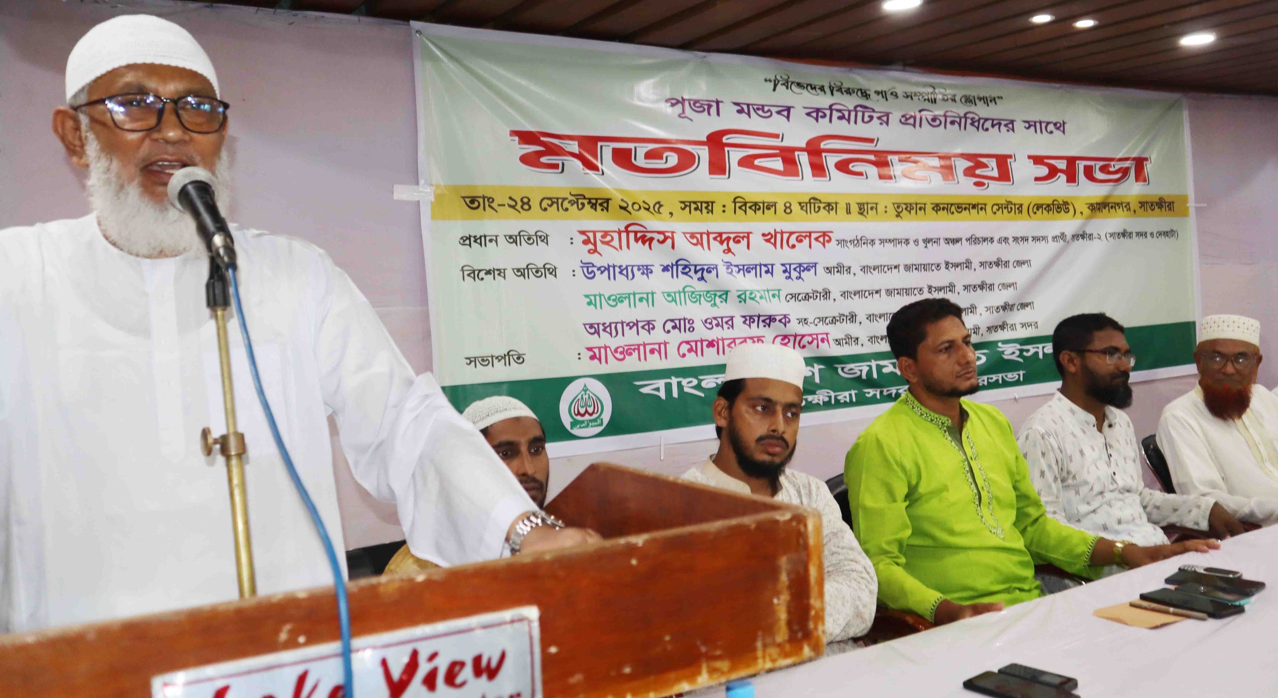 নিজস্ব প্রতিনিধি: আসন্ন শারদীয় দুর্গাপূজা উপলক্ষে ধর্মীয় সম্প্রীতি ও সৌহার্দ্য বজায় রাখার লক্ষ্যে অত্যন্ত প্রাণবন্ত পরিবেশে পূজা উদযাপন কমিটির সাথে সাতক্ষীরা জামায়াতের মতবিনিময় সভা অনুষ্ঠিত হয়েছে।
