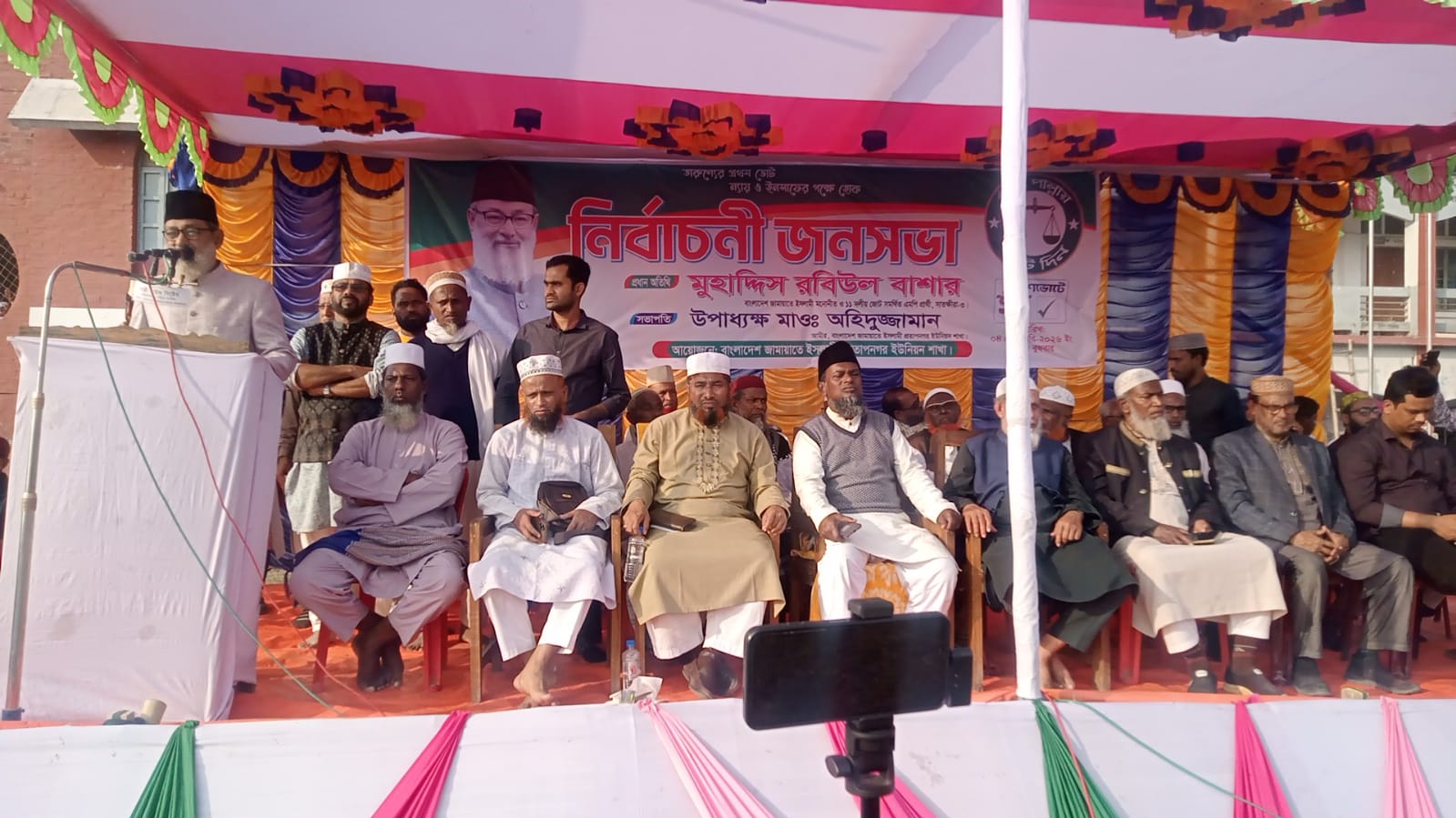 ইউনিয়ন আমীর উপাধ্যক্ষ মাওঃ অহিদুজ্জামানের সভাপতিত্বে ও সেক্রেটারী মাওঃ আল-আমীন ও মাওঃ কামরুল ইসলামের সঞ্চালনায় জনসভায় প্রধান অতিথির বক্তব্য রাখেন এমপি প্রার্থী মুহাদ্দিস রবিউল বাশার।