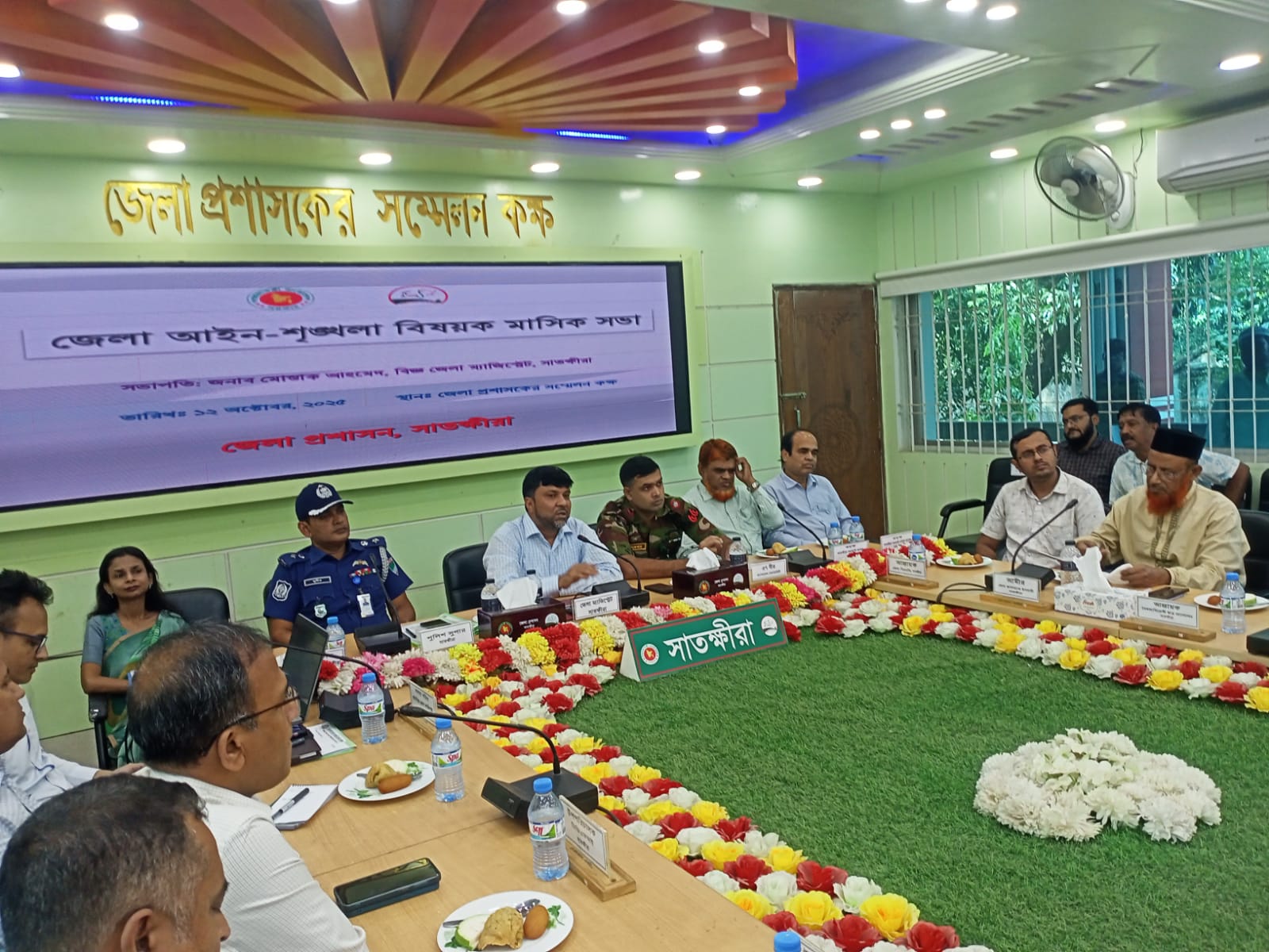 সাতক্ষীরার অতিরিক্ত জেলা ম্যাজিস্ট্রেট রিপন বিশ্বাসের সঞ্চালনায় আইন শৃঙ্খলা কমিটির মাসিক সভায় বক্তব্য রাখেন জেলা পুলিশ সুপার মোহাম্মদ মনিরুল ইসলাম, অতিরিক্ত জেলা প্রশাসক সার্বিক, বিএনপির আবু জাহিদ ডাবলু, সেনাবাহিনীর অধিনায়ক লে.কর্নেল ফাহিম আদনান, সেনাবাহিনীর সাতক্ষীরার ক্যাম্প কমান্ডার ক্যাপ্টেন আলিফ, স্থানীয় সরকার বিভাগের উপ-পরিচালক মাসরুবা ফেরদৌস, জেলা বিএনপি’র আহবায়ক এড.সৈয়দ ইফতেখার আলী, জেলা জামাতের আমীর অধ্যাপক শহিদুল ইসলাম, সাতক্ষীরা সরকারি কলেজের অধ্যক্ষ প্রফেসর মো.আবুল হাসেম, সরকারি মহিলা কলেজের অধ্যক্ষ বাসুদেব বসু, জেলা মুক্তিযোদ্ধা কমান্ডার স ম শহিদুল ইসলাম, জেলার সাত উপজেলা নির্বাহী অফিসার, জেলা পাবলিক প্রসিকিউটর মো.আব্দুর সাত্তার, ভোমরা সিএন্ডএফ এজেন্ট এ্যাসোসিয়েয়নের সভাপতি আবু হাসান, এনএসআই, ডিজিএফআইয়ের কর্মকর্তা, র্যাবের প্রতিনিধি, এছাড়া নৌপুলিশ, কোস্ট গার্ডসহ জেলার সকল সরকারি বেসরকারি অফিসের কর্মকর্তা-কর্মচারী, প্রিন্ট ও ইলেকট্রনিক মিডিয়ার সাংবাদিকবৃন্দ উপস্থিত ছিলেন।