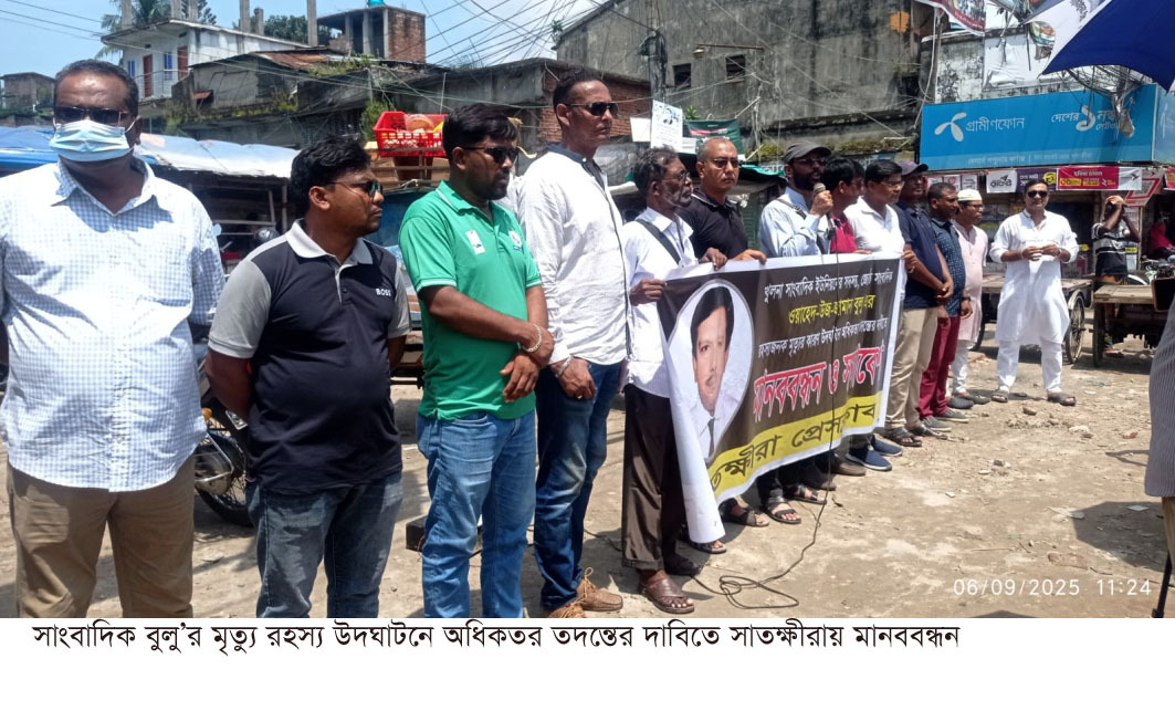 নিজস্ব প্রতিনিধি: খুলনার জ্যেষ্ঠ সাংবাদিক ওয়াহেদ-উজ-জামান বুলু’র অস্বাভাবিক মৃত্যুর রহস্য উদঘাটনের দাবিতে সাতক্ষীরায় মানববন্ধন ও সমাবেশ অনুষ্ঠিত হয়েছে।