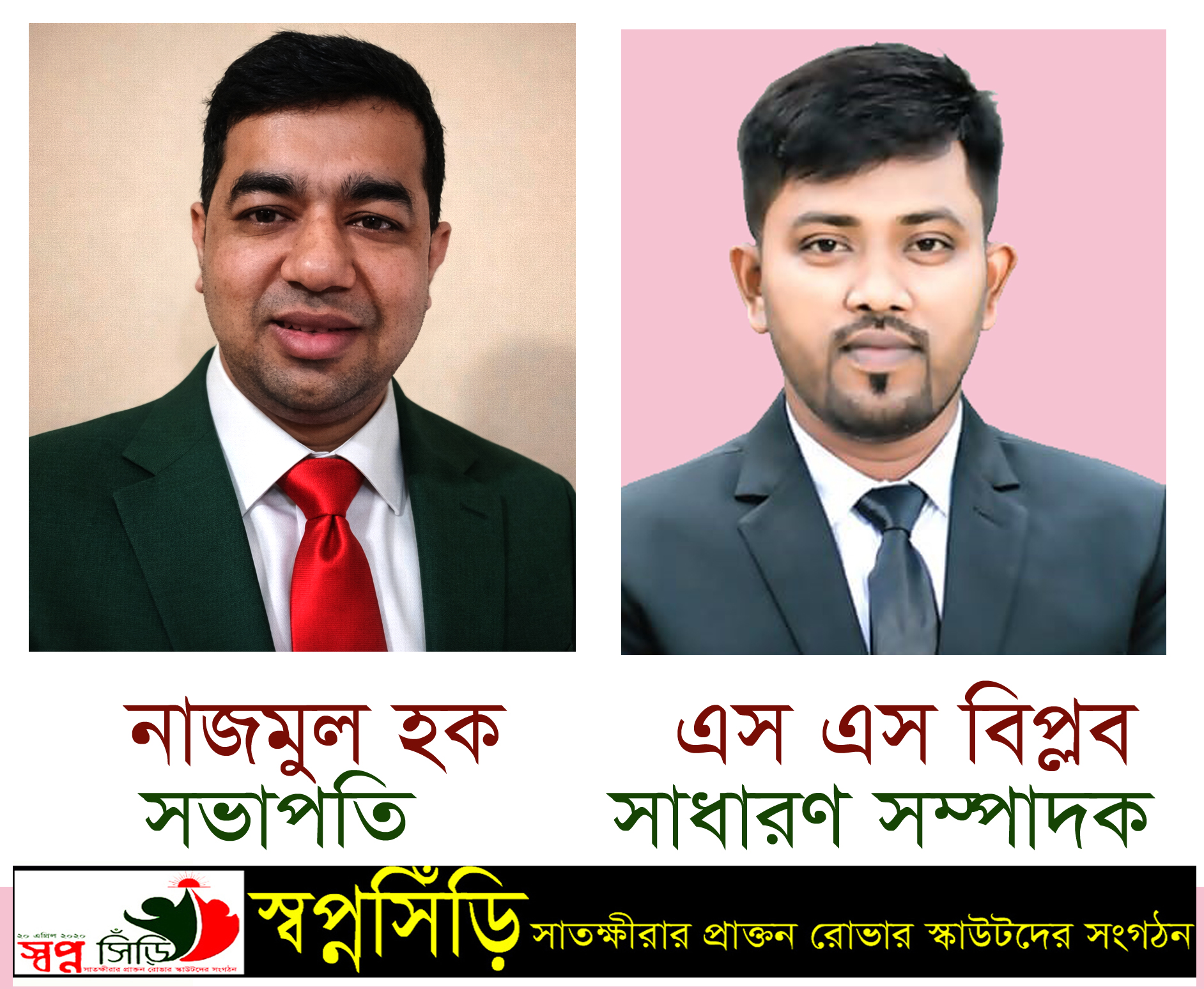 প্রেস বিজ্ঞপ্তি: সাতক্ষীরার প্রাক্তন রোভার স্কাউটদের সংগঠন স্বপ্নসিঁড়ির ২০২৬-২৭ সালের কমিটি গঠন করা হয়েছে। ২২ মার্চ (রোববার) সকালে স্বপ্নসিঁড়ির মিলনমেলায় কমিটি গঠন করা হয়। অত্যান্ত আনান্দঘণ পরিবেশে গঠিত কমিটিতে সভাপতি পদে নাজমুল হক, সিনিয়র সহ সভাপতি পদে বিশ্বজিৎ ঘোষ, সাধারণ সম্পাদক পদে অ্যাডভোটেক এস এম বিপ্লব হোসেন নির্বাচিত হন।