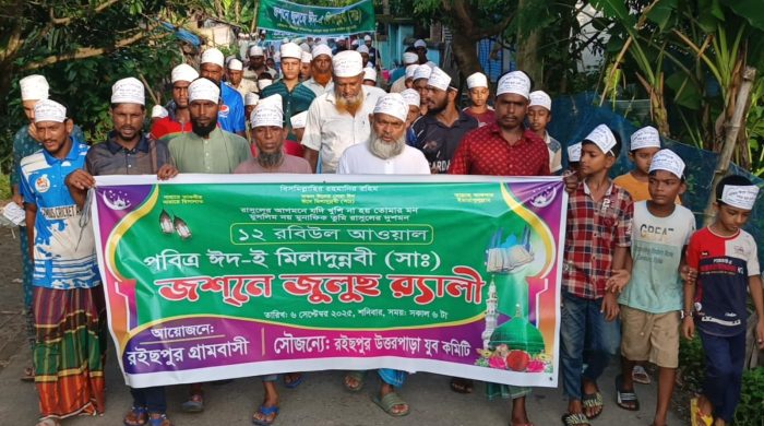 নিজস্ব প্রতিনিধি: পবিত্র ঈদে মিলাদুন্নবী (সা.) উপলক্ষে সাতক্ষীরা পৌর ৭ নাম্বার ওয়ার্ড এর রইচপুরে বর্ণাঢ্য জশনে জুলুস র্যালি অনুষ্ঠিত হয়েছে। ১২ রবিউল আউয়াল মহানবী হযরত মুহাম্মদ (সা.)-এর জন্ম ও ওফাত